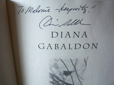 Currently Diana is on a book tour promoting the recent release of the 7th (of at least 8, I think) novel in her Outlander series, Echo in The Bone. 4 years ago when A Breath of Snow and Ashes came out, I had to miss her visit because the high school show I was directing was in its final dress rehearsal and well, it’s sorta important for the director to be there for that. So when I saw she would be here again, I begged the husband to play superDad while I made the hour+ drive to meet one of my literary idols.