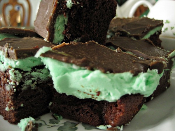 I had my first encounter with these brownies while I was a high school English teacher, and subject to the variety of treats and goodies left all over the teacher’s communal office. I don’t like cake, and can say no to most cookies, but man am I a sucker for a brownie…add mint to the mix and my willpower disappears faster than (insert your favorite metaphor here).