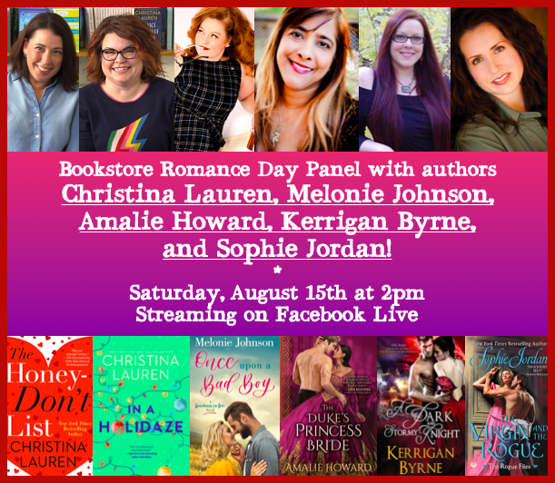 Hosted by OLD FIREHOUSE BOOKS, this LIVE author chat features contemporary romance authors Christina Lauren and Melonie Johnson along with historical romance authors Amalie Howard, Kerrigan Byrne, and Sophie Jordan. Join in the discussion on the craft of writing romance and the joy of reading it by registering HERE (the event is free, but space is limited).